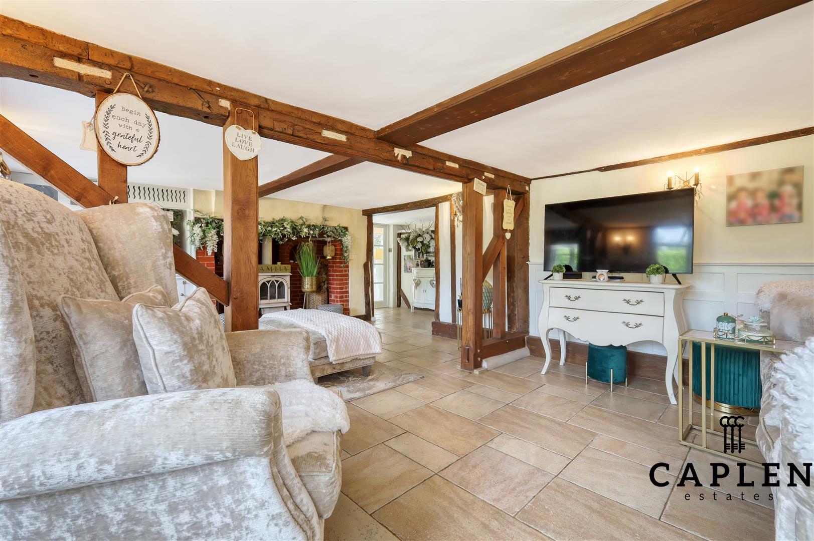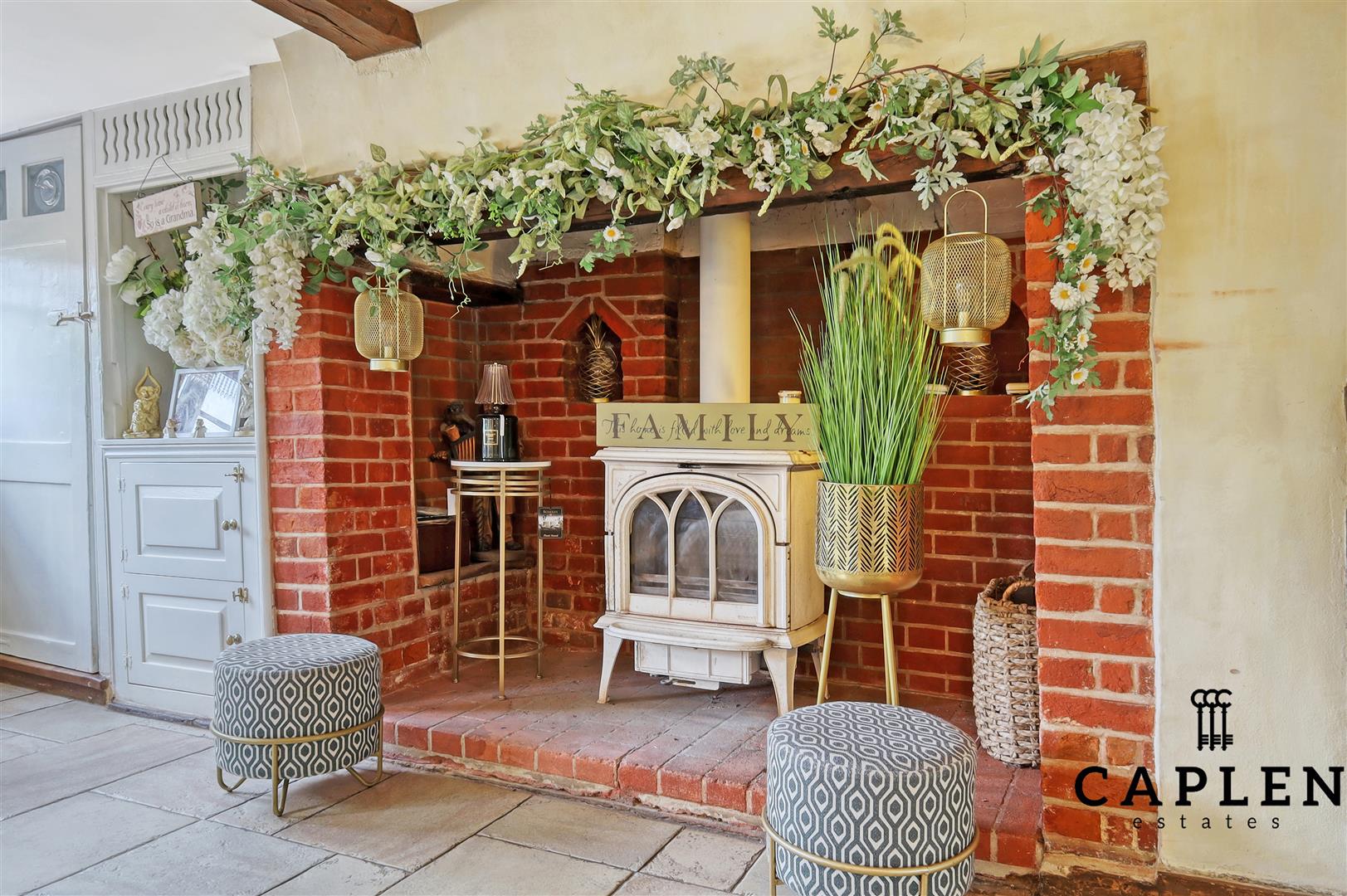 Caplen Estates are delighted to present to the market a Grade II listed 17th century cottage which oozes in original features throughout offered “Chain Free”. The main entrance leads in to a family room with hard stone flooring, inglenook fireplace with wood burner and access to main living space. This space is saturated in oak beams, stone flooring and a further fireplace with wood burner.