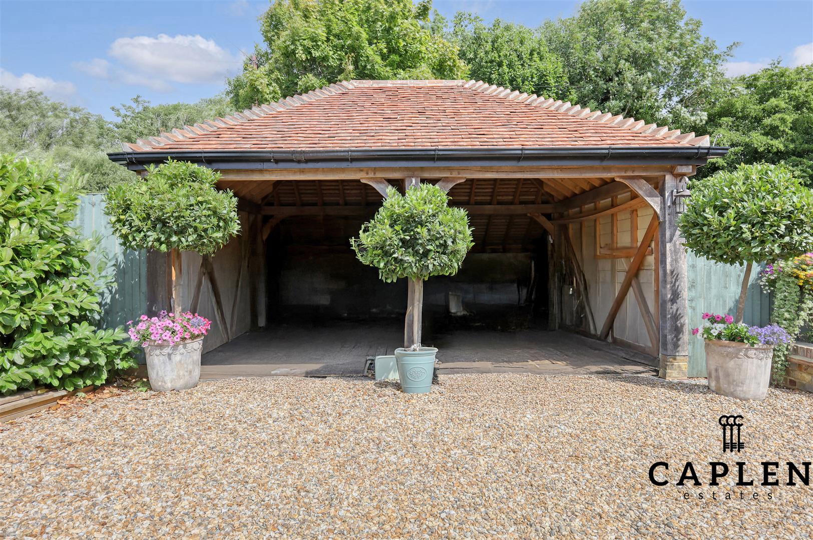 On the first floor there are three bedrooms, the main bedroom has fitted wardrobes, and an ensuite bathroom with a separate shower. Another unique feature is that the second bedroom can be accessed directly from the ground floor or via the main first floor landing as well. The garden provides that countryside feel with views over looking “Ada Cole” horse sanctuary that Broadley Common offers to its residents. The oak framed cart lodge and gravel driveway offers ample parking for the residents and guests.