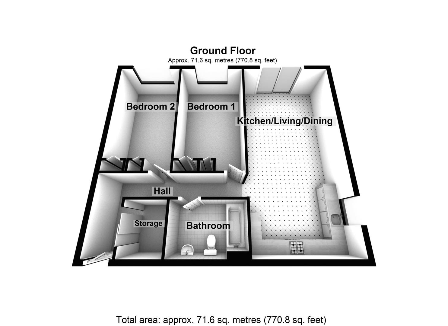 To access the property there is a secure entry system including gated parking. On entry into the property there is a spacious open planned kitchen/dining/living room with double doors leading onto the private garden area to enjoy some alfresco dining. The master bedroom offers built-in wardrobes, with a further double bedroom also with built-in storage space. The family bathroom is fully tiled and has built in storage. Additional benefits to the property are integrated appliances in the kitchen, large storage cupboard in the hallway, and allocated parking.